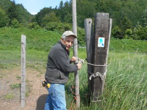 Volunteers weed whacked the campsite, added a fire ring and installed a rain gutter collection system for fire safety. Make sure there is water available, from the bucket or from the stream beyond the cabin before starting a campfire.