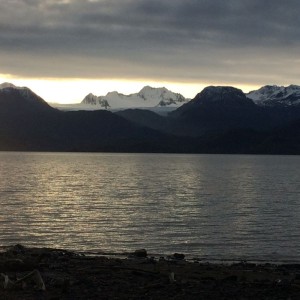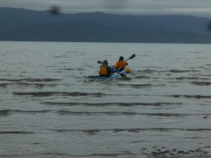 Aug. 18, 2014, 9:45 AM, As the weather began to clear we started our paddle across the bay, heading over to Chugachik Island. True to form, about 20 minutes out the winds began to fill up the bay. The wind built to approx. 10 knots from the SW, with occasional 15 knots. Seas primarily 1-2 feet, with an occasional 3 foot wave.