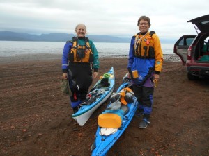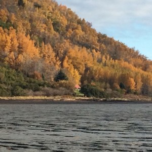 October 4, 2015: After checking the weather, ocean conditions and tide tables several times, decided that the conditions were good for a paddled to the Switch Back Trail. I had left my kayak at Kilcher Beach before hand so I only had to carry the gear in a backpack down from the Homestead to the Beach. Put in at Kilcher Beach at 7:35 am and paddled to Swift Creek. Stopped at East End B&B on the way. The Fall scenery was beautiful along much of the route and took lots of pictures. Arrived at the Switch Back trail at around 10:30 am but could not get to the road beach due to the amount of mud. Weather was partly sunny and seas ranged from calm to 1’ swells. Got a ride back up on 4-Wheeler to Homestead Parking Lot from Otto Kilcher. This trip emphasized the need to time trips so that one arrives and leaves the campground at Mossy's Cabin at high tide otherwise the area becomes unaccessible by foot especially when carrying gear. In my case, I arrived 3 hours passed high tide and the water continued to receed rapidly during the 20 minutes or so that I had a pretty long slog before I could get back in the boat.